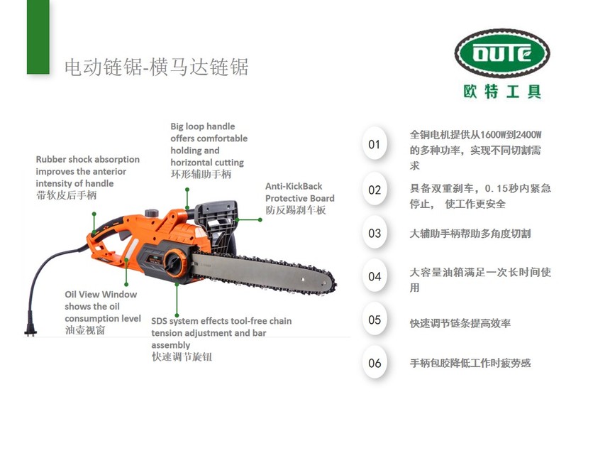 4.鏈條自動加油系統,充分潤滑鏈條,防止漏油。