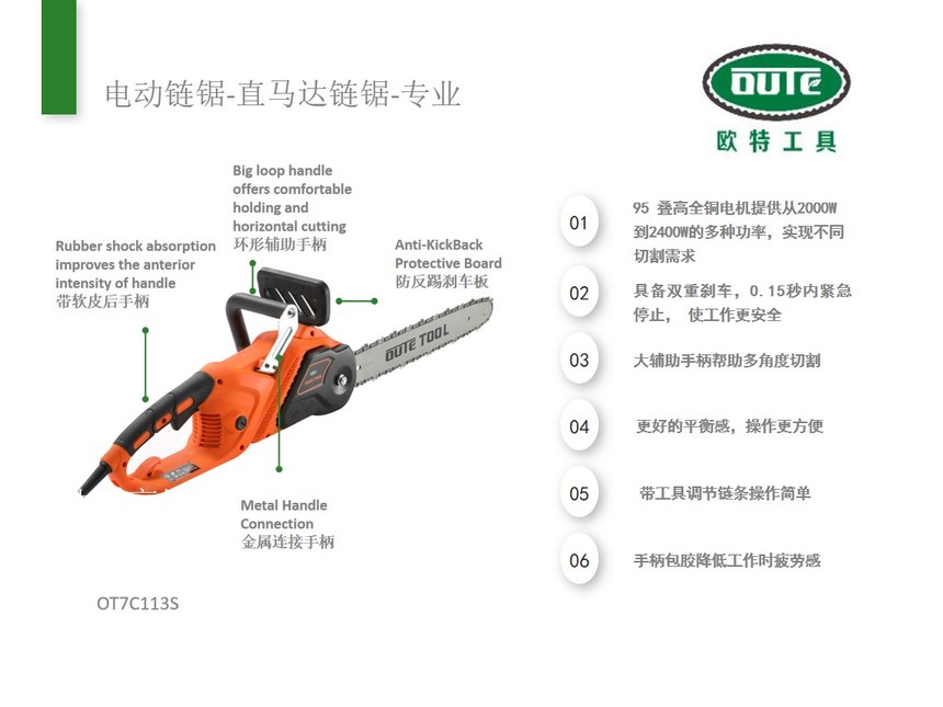 OT7C109在線電機(jī)電動(dòng)鏈鋸大環(huán)柄2400W銅電機(jī)平衡專業(yè)園林刀具![]()